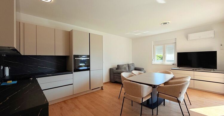 Unser Ferienapartment Top 1 im Erdgeschoss mit einer Größe von 62 m2 für 4 Personen ist mit 2 getrennten Schlafzimmern, großen Boxspringbetten inkl. Kleiderschränken, 2 separaten Bädern mit Duschen inkl. Handtüchern und Haartrockner, 2 Toiletten – einer voll ausgestatteten Küche mit einem großen Esstisch für 4 Personen – Geschirrspüler, Kühlschrank, Backofen, Wasserkocher, Kaffeemaschinen, schönem großen Wohnraum, großer TV, kostenloses WLAN, Klimaanlagen in jedem Zimmer, Terrasse mit einem Esstisch für 4 Personen voll ausgestattet und lässt keine Wünsche offen.